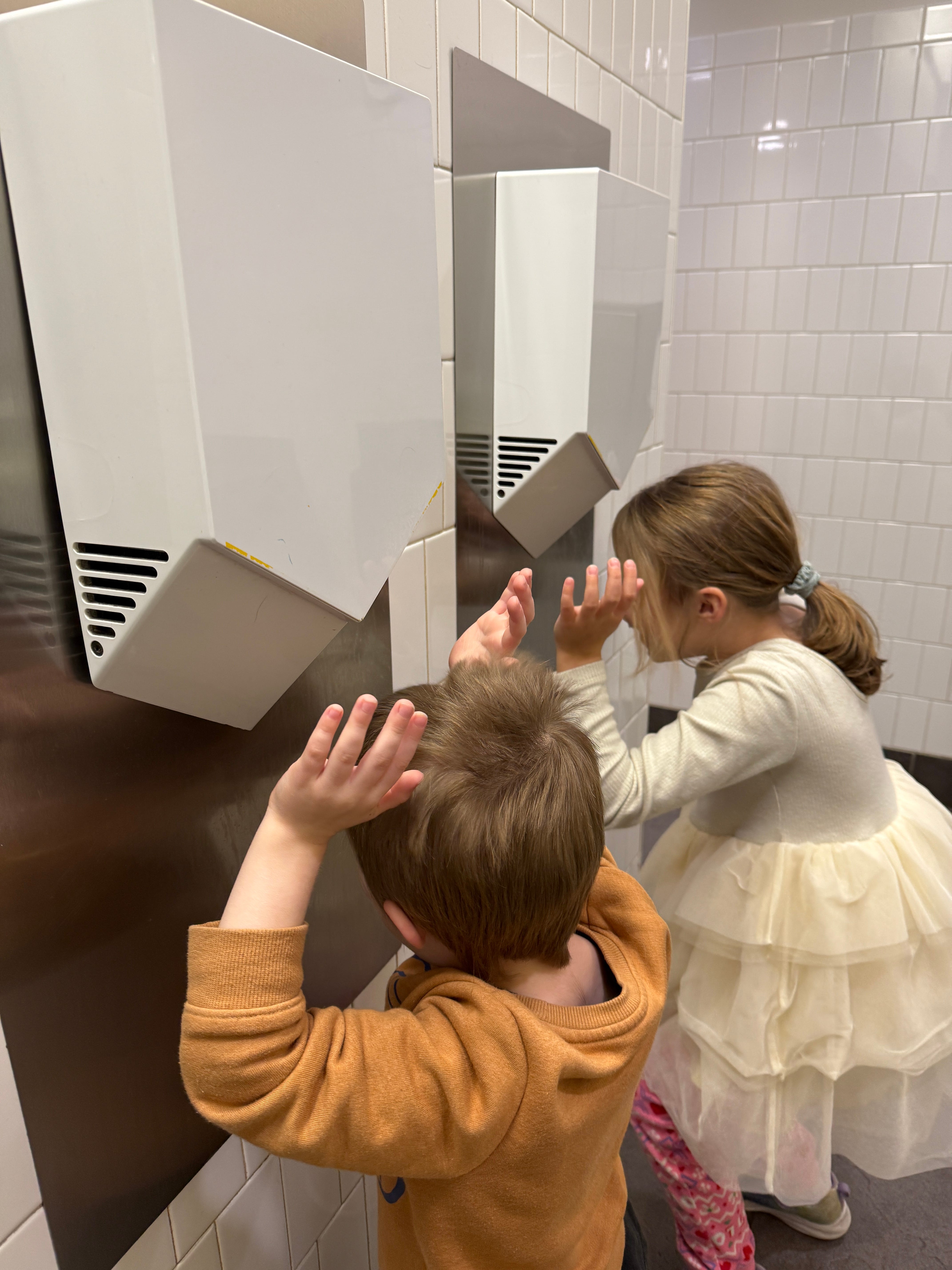 But what I noticed, again and again while traveling over the holidays, is that public bathrooms assume a body of a certain height, reach, strength, speed, and ability. As soon as you place a child into that system, the friction becomes visible.